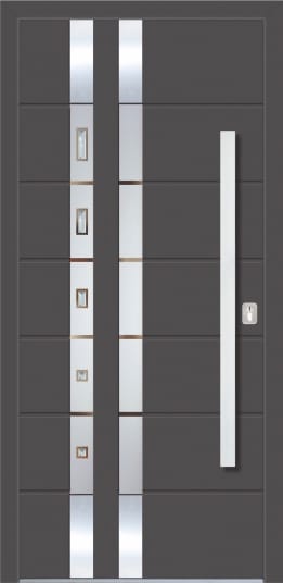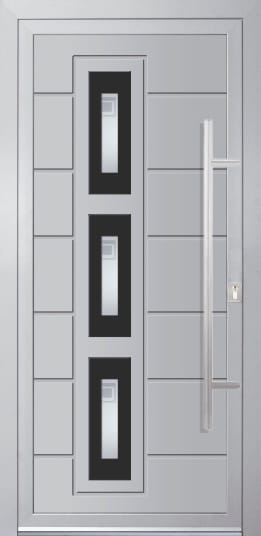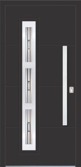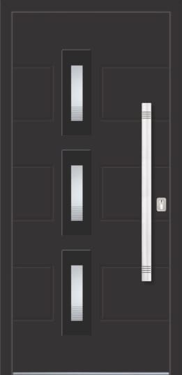 Trīs kameru durvju sistēma ar siltumizolāciju. Sistēmai ir komplanārās struktūras profili (griezuma atstarpe 18 mm) un iespēja izmantot stiklojuma lodītes standarta “euro” vītnei.